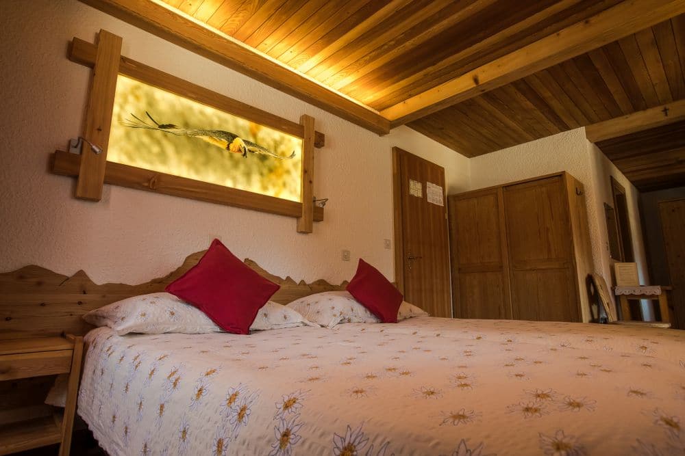 Dormez dans nos lits boxspring (90x200cm) super confortables qui font partie de toutes nos chambres si cozy. Dans chaque chambre une grande photo illuminée représente un animal de la faune d’Anniviers. Venez découvrir quel animal vous tiendra compagnie lors de votre séjour.